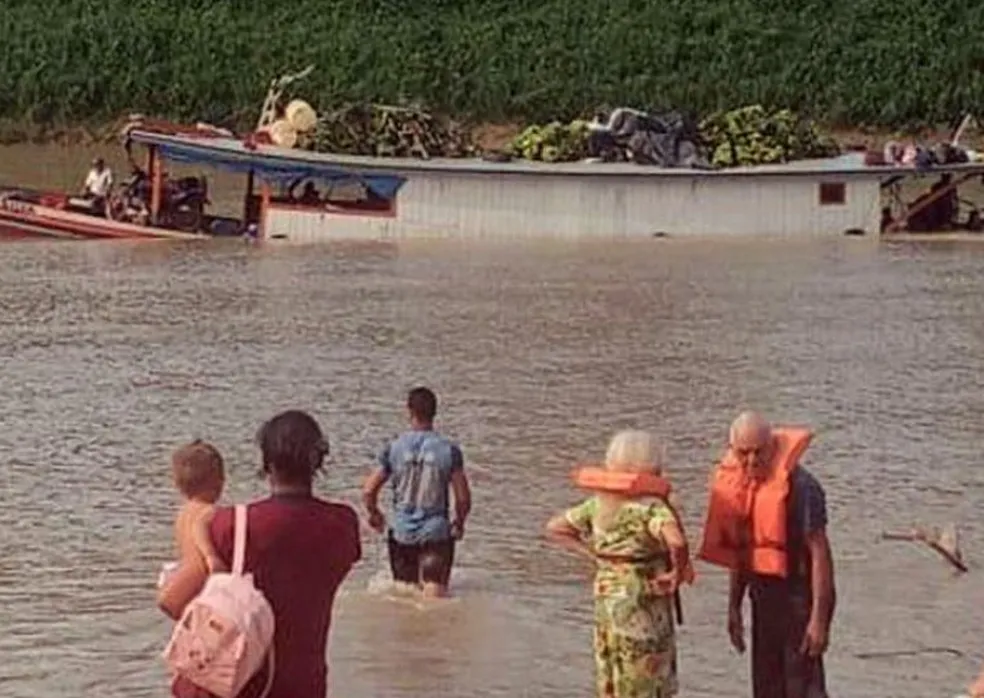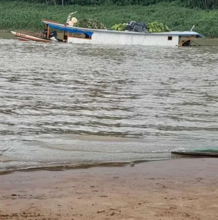 Tripulantes não ficaram feridos e foram resgatados por ribeirinhos. Embarcação afundou parcialmente dentro do Rio Juruá, em Cruzeiro do Sul, interior do Acre.