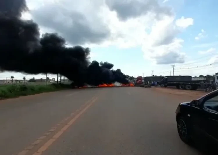 Nas imagens, compartilhadas nas redes sociais em Brasileia, é possível ver manifestantes com camisetas do Brasil e bandeiras do país, além de vários caminhões atravessados na pista impedindo a passagem dos demais motoristas. Os manifestantes também queimaram pneus na via.