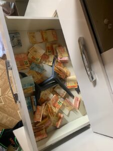 Chegando ao endereço mencionado, notaram que a casa não tinha moradores e, ao entrar, depararam-se com mais de R$ 2.692,00 (dois mil seiscentos e noventa e dois reais) em espécie, além de mais de 3,5 kg de cocaína. A descoberta incluiu também diversos materiais relacionados à embalagem e distribuição da substância ilícita, como uma balança de precisão, sacos plásticos e tesouras, indicando a clara intenção de comercialização.