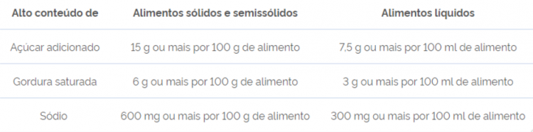 Estas informações serão obrigatórias para os alimentos que apresentarem as seguintes quantidades de nutrientes: