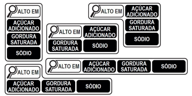 - Rotulagem Frontal: Será apresentada com destaque na parte frontal superior da embalagem, utilizando-se da figura de uma lupa. Estas informações deverão considerar dados por 100 g (produtos sólidos e semissólidos) ou por 100 ml (produtos líquidos), indicando alto teor de açúcares, gordura saturada e sódio.
