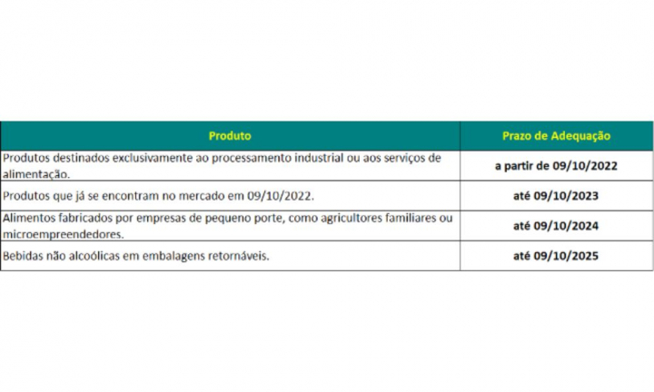 Embora a entrada em vigor das novas regras seja em 9 de outubro, os prazos para adequação acontecerão de forma gradual. É fundamental lembrar que a preocupação com a saúde do consumidor é o principal motivador destas mudanças, as quais podem contribuir com a redução de índices de obesidade, diabetes e colesterol alto, entre outras doenças crônicas associadas a nutrientes.