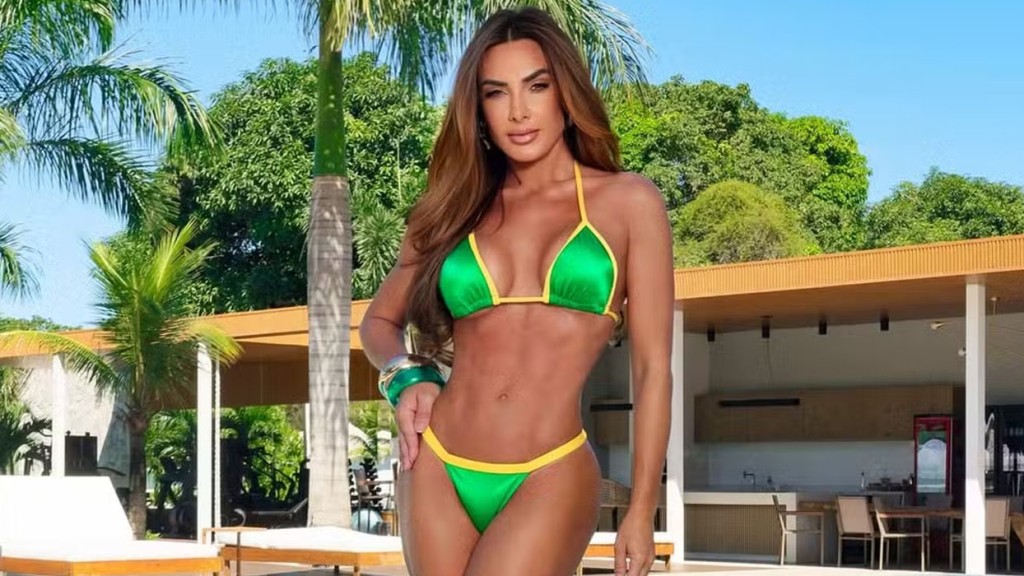 Nicole Bahls posa de biquíni em clima brasileiro após vitória da Seleção