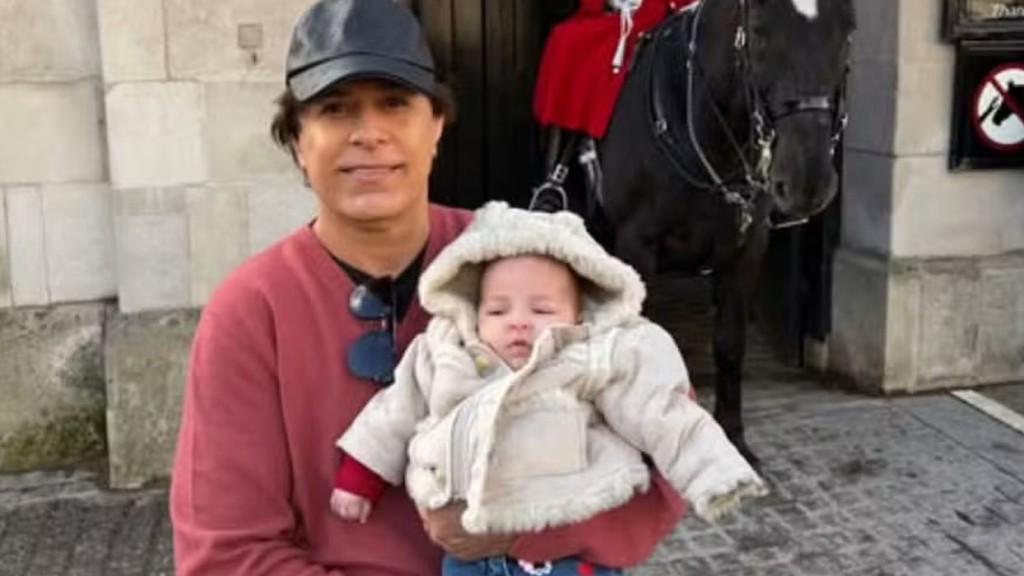 Tom Cavalcante posa com a neta Antonella durante passeio em museu de Londres
