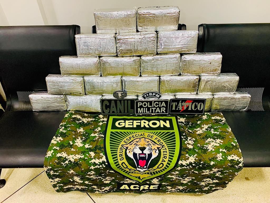 Uma ação conjunta da Polícia Militar do Acre (PMAC), por meio do 7º Batalhão de Polícia Militar (7º BPM) juntamente com o Grupo Especial de Fronteiras (GEFRON) apreenderam na noite desta quarta-feira, 16, mais de vinte e três quilos de drogas, na Rodovia BR 364. Durante a abordagem a um ônibus, um homem de 22 anos foi preso.