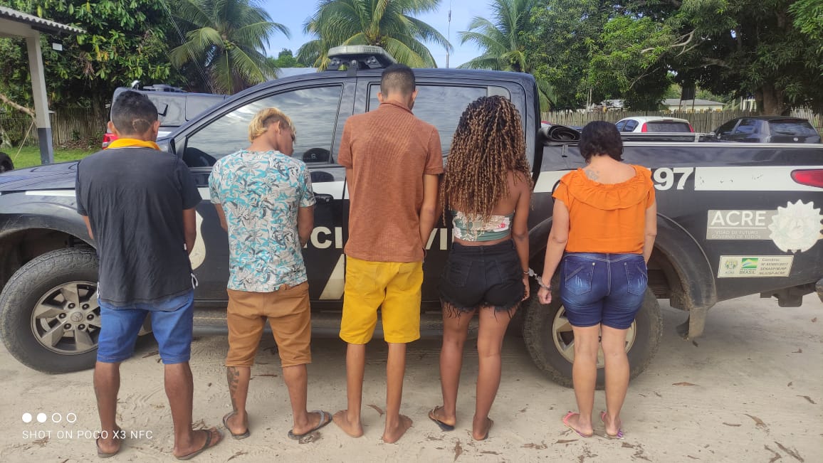 Polícia Civil prende quatro pessoas e apreende menor envolvidos em crimes de roubo e trafico de drogas em Mâncio Lima