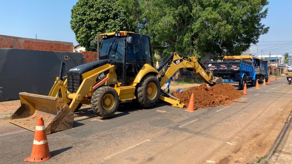 Na manhã desta segunda-feira (8), uma equipe do Saerb trabalhava na substituição de um cano de PVC de 250 mm na Rua Valdomiro Lopes, no bairro Vila Ivonete. A intervenção foi necessária após a identificação de obstrução na rede.