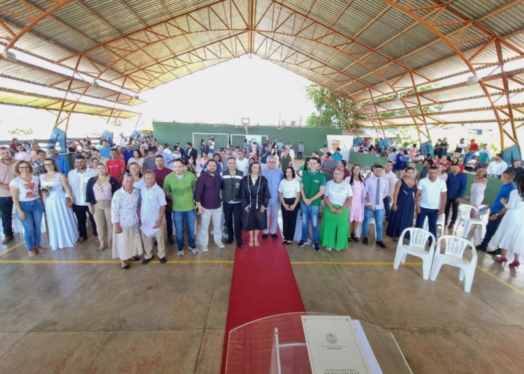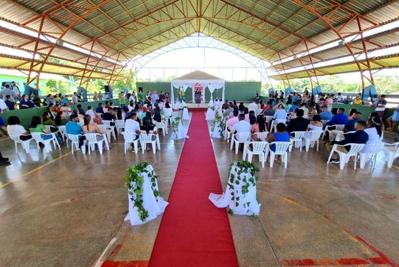 Trinta e oito casais celebraram a união no casamento coletivo do Projeto Cidadão, do Tribunal de Justiça do Acre (TJAC), no sábado, 26, na Escola Estadual São Luiz Gonzaga, na Vila Campinas, no município de Plácido de Castro. Esta edição do casamento foi realizada dentro da programação do projeto “Defensoria ao seu lado, cidadania mais perto de você”, da Defensoria Pública do Estado do Acre (DPE-AC).