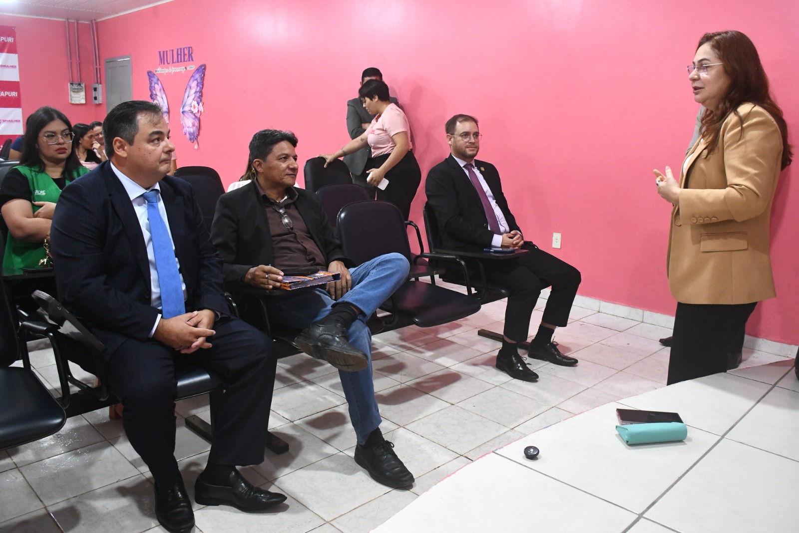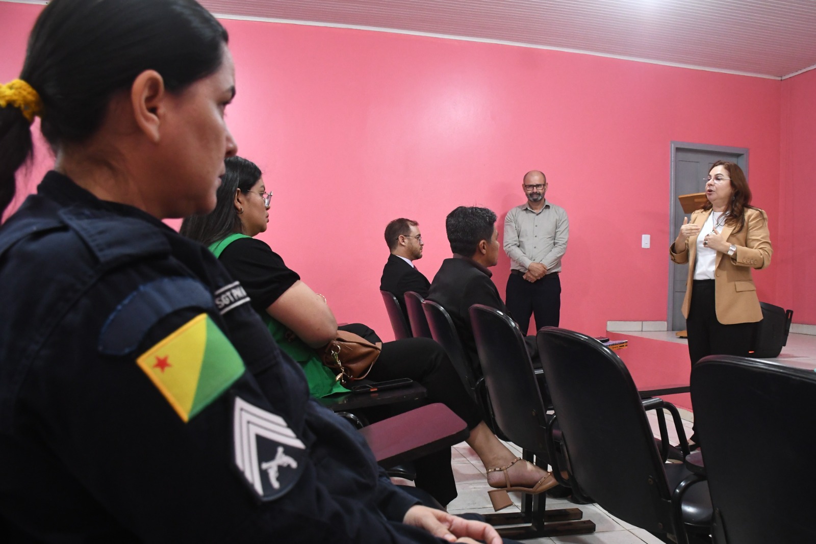 Além de testemunhas, parentes e comunidade ansiosos e emocionados, prestigiaram e compuseram o dispositivo de honra, a juíza de Direito Isabelle Sacramento Torturela, magistrada titular da Comarca de Plácido de Castro, o prefeito do município Camilo da Silva, o defensor Público Celso de Araújo, o promotor de Justiça do Ministério Público do Acre (MPAC) Lucivan Neri, o defensor Público da União Tiago Brasil, a representante do Serviço Nacional de Aprendizagem Rural (SENAR) Márcia Cristina e o delegatário substituto do Cartório de Plácido de Castro Jorge Gamboggi.