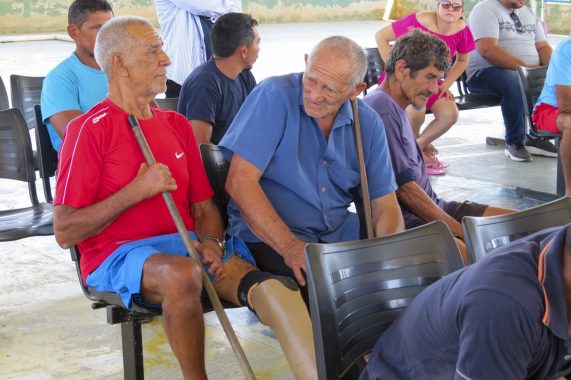 Ao saberem que as equipes da COMSF estavam na comunidade, rapidamente mais de 80 moradores e moradoras da ocupação convergiram ao ginásio local, entre eles, mulheres com filhos de colo, grávidas, idosos e pessoas com dificuldades de locomoção.