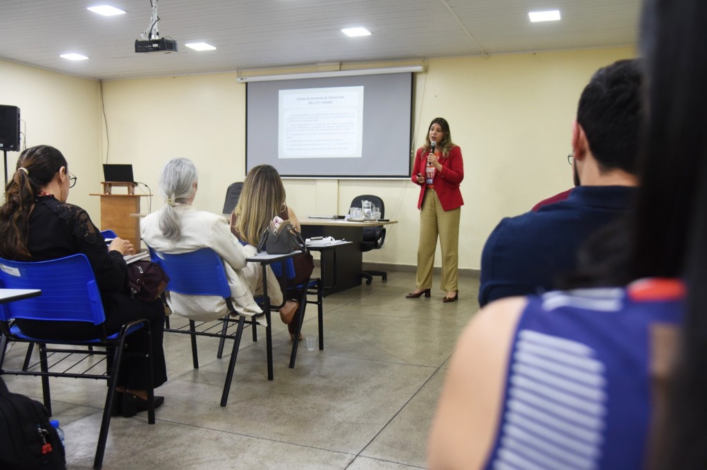 Inicialmente, a magistrada apresentou o perfil das mulheres vítimas de violência. Conforme o Anuário Brasileiro de Segurança Pública, elas são majoritariamente negras, jovens e agredidas por companheiros ou ex-companheiros. Além disso, a juíza trouxe o histórico das leis de proteção à mulher no Brasil.