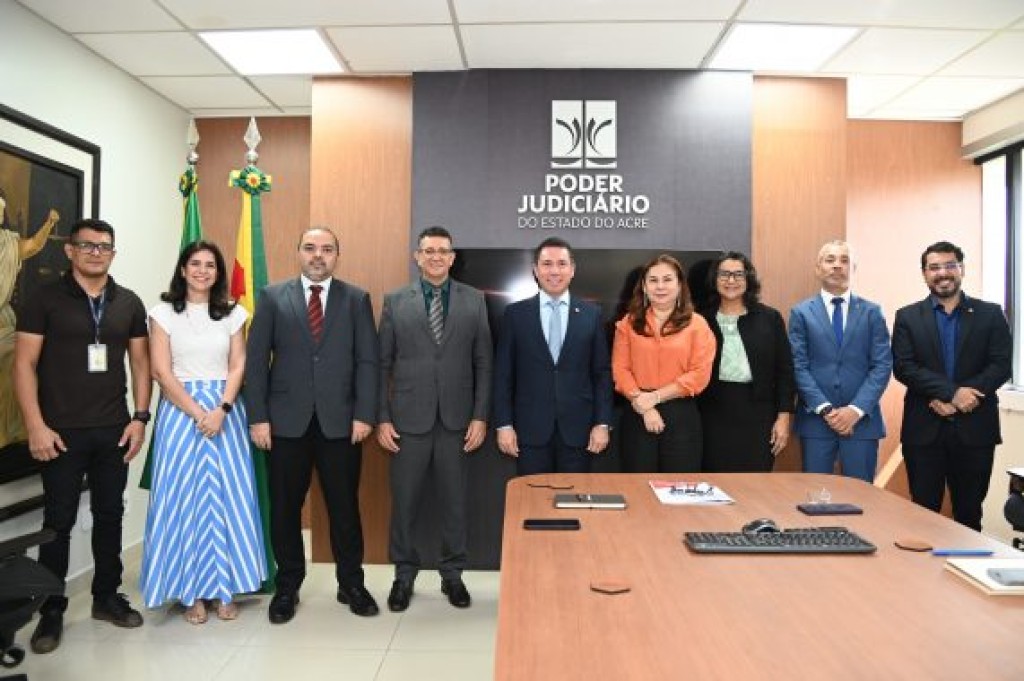 O Tribunal de Justiça do Acre (TJAC) sediou, na manhã desta quinta-feira, 12, reunião institucional com a participação do Tribunal Regional Eleitoral do Acre (TRE-AC), com o objetivo de fortalecer a cooperação entre as duas Cortes e alinhar ações de interesse comum.