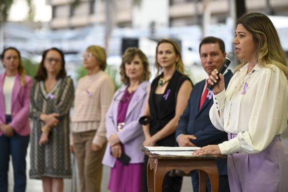 A procuradora de Justiça Rita de Cássia afirmou ser uma honra, como mulher, representar o Ministério Público. Segundo ela, o MP tem atuado incansavelmente para acolher, proteger as vítimas e responsabilizar os agressores. “Aqui nós reafirmamos nosso compromisso coletivo de fazer do Acre um lugar onde as mulheres possam viver de forma digna e sem violência”, declarou. Ela também destacou que o machismo estrutural ainda é dominante na sociedade e reforçou a importância de campanhas de conscientização.
