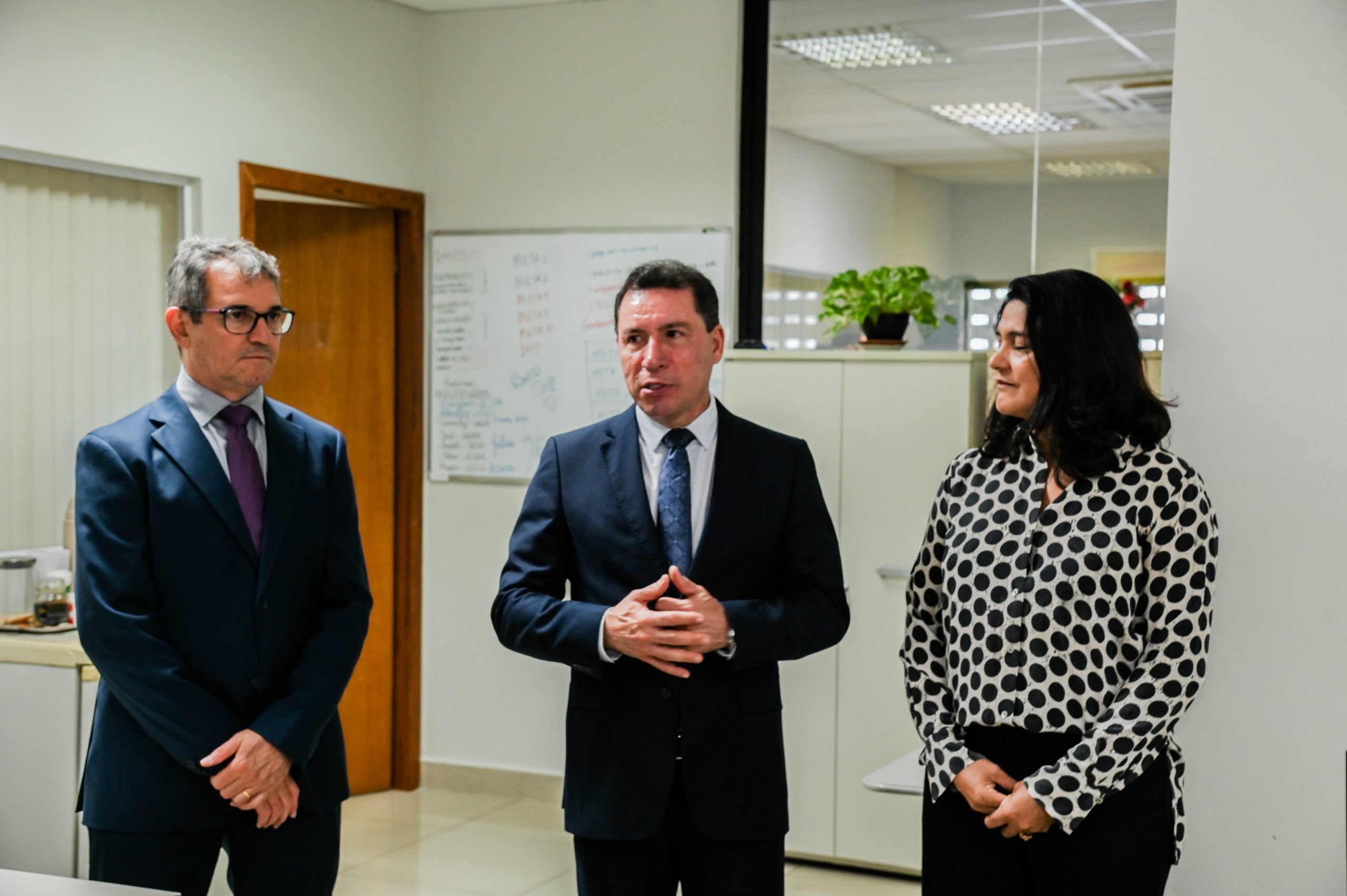 O presidente do Tribunal de Justiça do Acre (TJAC), desembargador Laudivon Nogueira, juntamente com o juiz auxiliar da Corregedoria-Geral da Justiça, Anastácio Menezes, recebeu nesta sexta-feira, 17, o desembargador Renato Dresch e sua equipe do Tribunal de Justiça de Minas Gerais (TJMG).